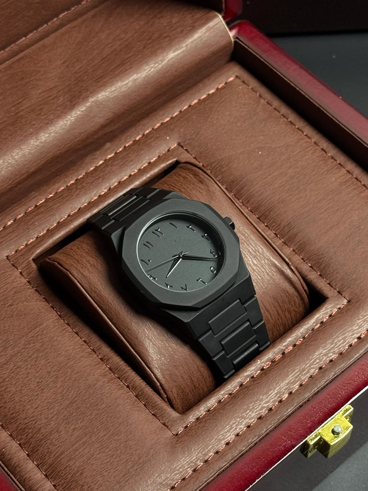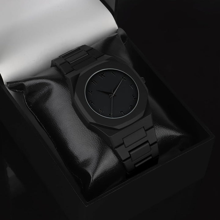 Step into timeless sophistication with the Arabic Black Aura Watch — where modern design meets deep cultural roots. Featuring striking Arabic numerals on a deep black dial, this timepiece is designed for those who appreciate both tradition and trend.
